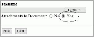 Browse to select the Motion (PDF file). Select the "Yes" radio button for attachments to document (PDF file). Click Next.